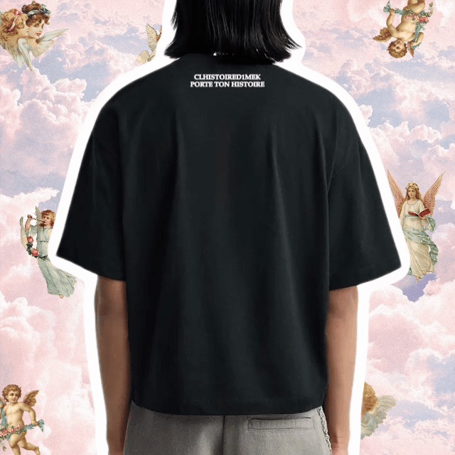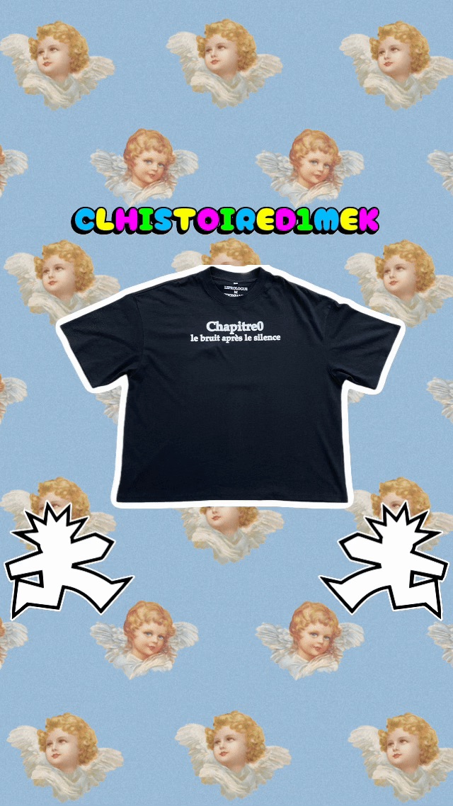 Imprimé en sérigraphie blanche sur coton épais, “Chapitre 0” ouvre la première page de l’univers Clhistoired1mek.